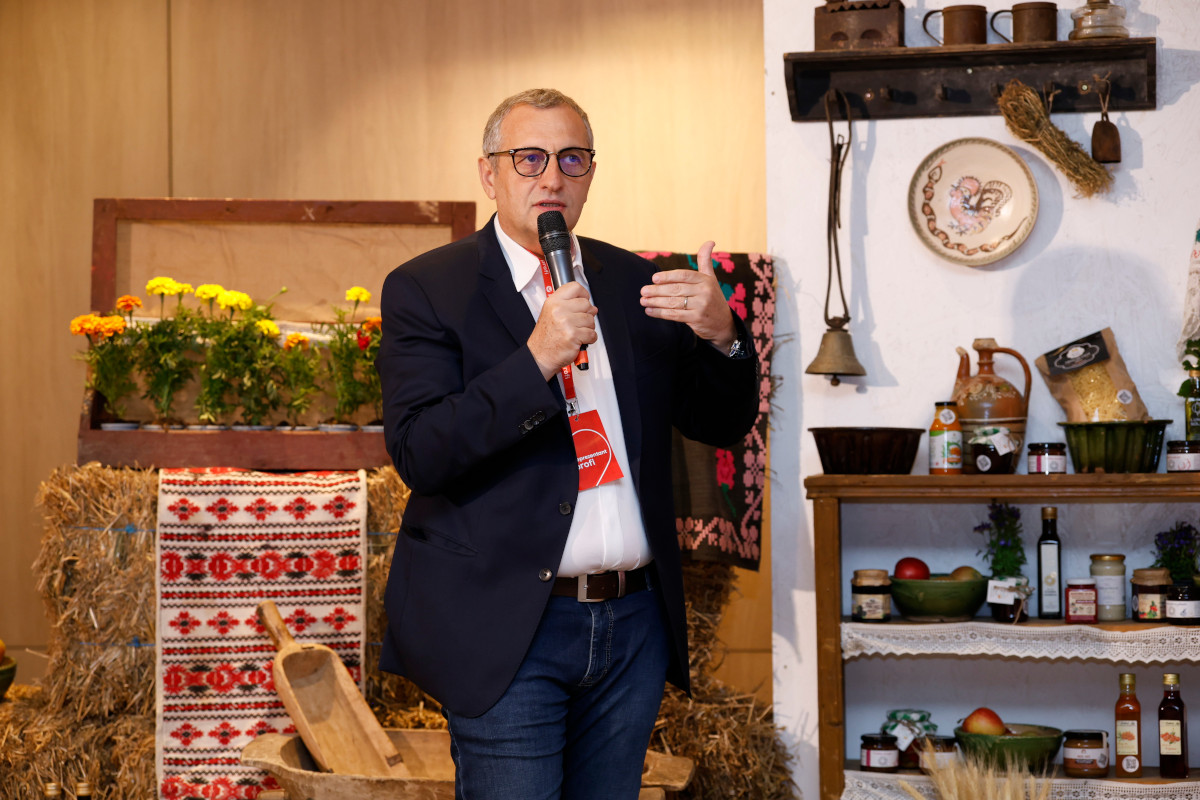 Pe lângă discuțiile purtate în Sala Unirii din Palatul Parlamentului, participanții au fost întâmpinați de un decor generos care a recreat satul românesc cu bogățiile sale și o sumedenie de produse de la producătorii care duc mai departe rețetele tradiționale și autentice, producători pe care Profi îi găzduiește la Raftul cu Bunătăți Locale din magazine selectate, dar și pe platforma Via Profi.